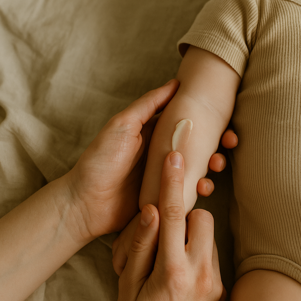 The heart of our range. A rich, concentrated balm made to soothe irritation, calm dryness, and protect sensitive skin — inspired by the very first balm created for our baby’s rash.